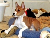 The Basenji is a very catlike, intelligent, poised, elegant dog. He is also known for being full of play and activity which is “right up my alley”. The Basenji is a very muscular dog that moves with ease and agility. The Basenji is commonly known as the “barkless dog”, but when excited, he makes a noise that sounds like a yodel. The Basenji is a nice size dog to fit in with our other dogs and our family life style. The basenji’s minimal grooming requirements due to his short coat make him the perfect dog for me to travel with and take on the road.